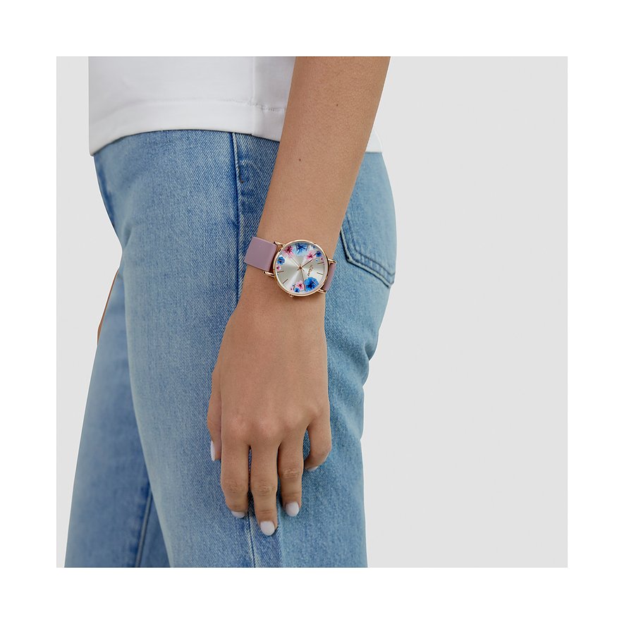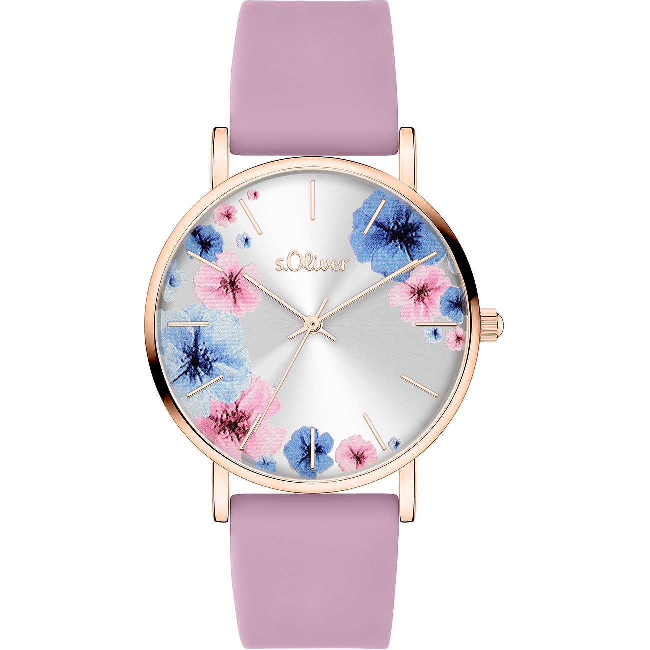 s.Oliver Damenuhr in modernen Farben und schönem Blumenprint auf dem Zifferblatt SO-4479-PQ
